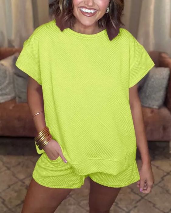2024 New Women's Solid Textured Drawstring Shorts Set (Buy 2 Free Shipping)
