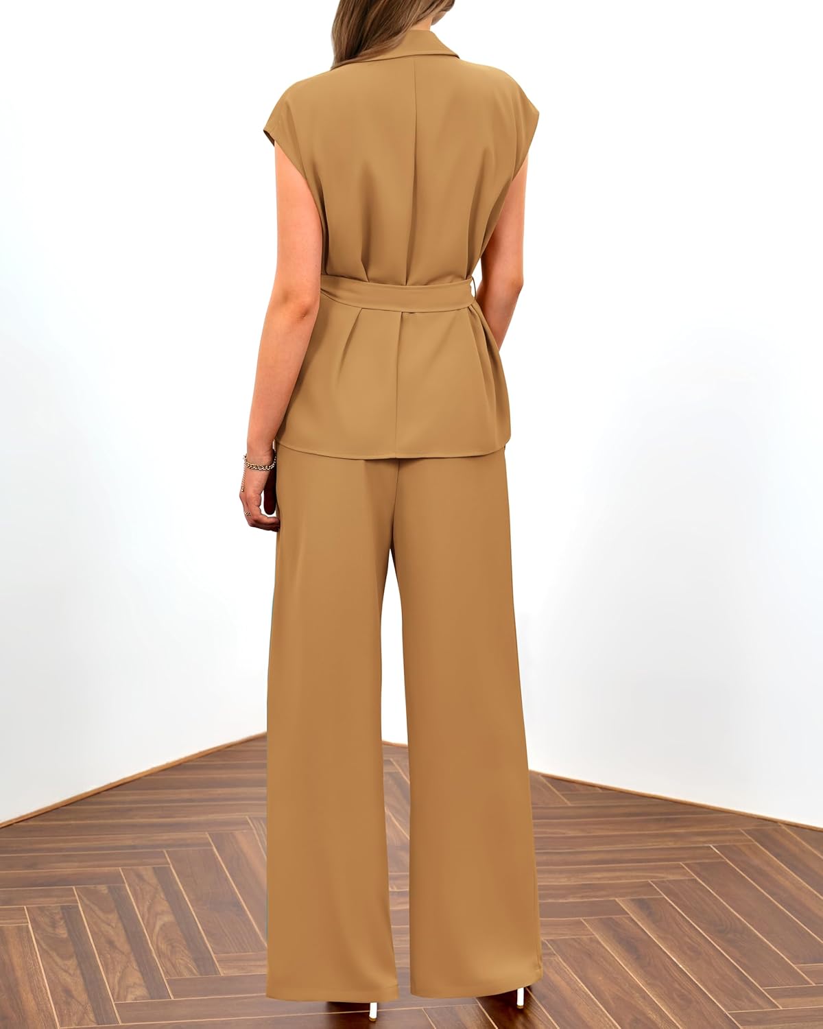 women cap sleeve tie waist vest solid color flowy pant sets holiday vaction 2 piece outifts