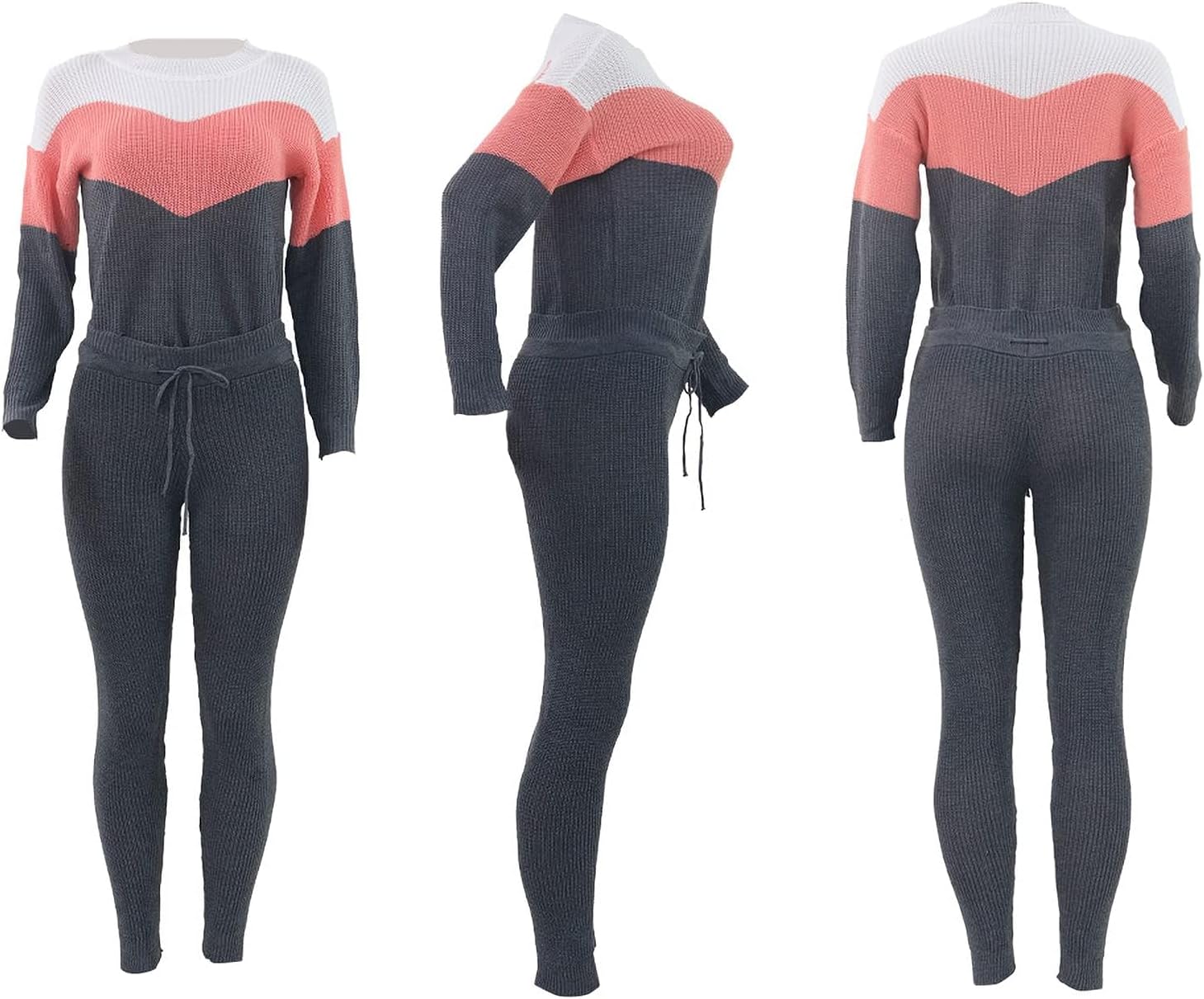 Womens Two Piece Knitting Sweatsuit Long Sleeve Sweatshirt Long Pants Fall Loungewear
